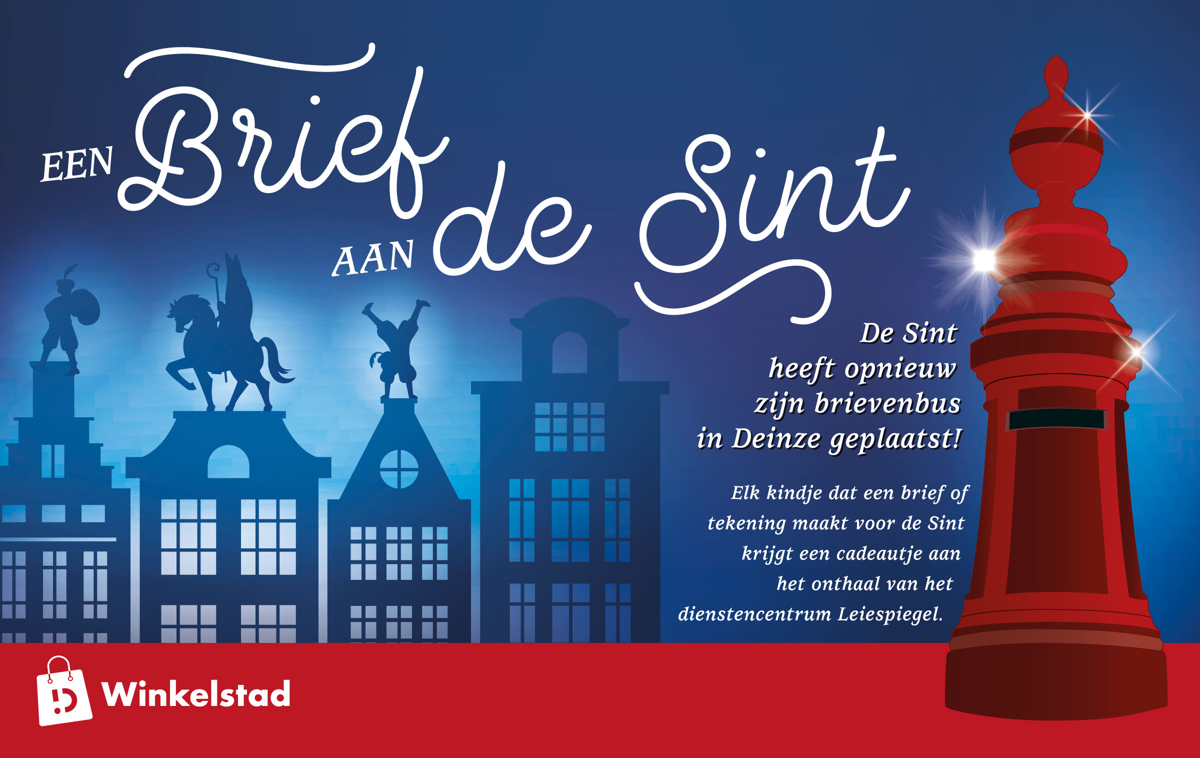Vanaf vandaag staat de bekende rode brievenbus van Sinterklaas er terug, hij staat opnieuw links van het Dienstencentrum Leiespiegel.